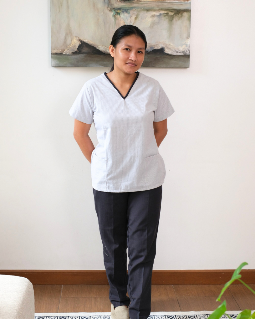 Our seersucker fabric is perfect for the summer and humid weather because it’s made from lightweight cotton fabric, that has a little bit of stretch to it. It has alternating crinkled and smooth vertical stripes that NEVER NEEDS IRONING.