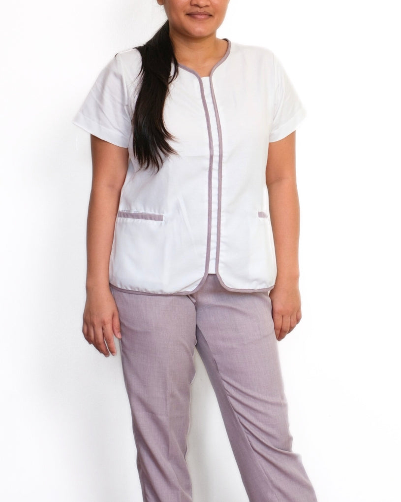 * If you choose Solid Black as an option for the piping and bottoms, fabric is Peach Twill. Peach still is lightweight and crease free. 65% cotton, 35% polyester